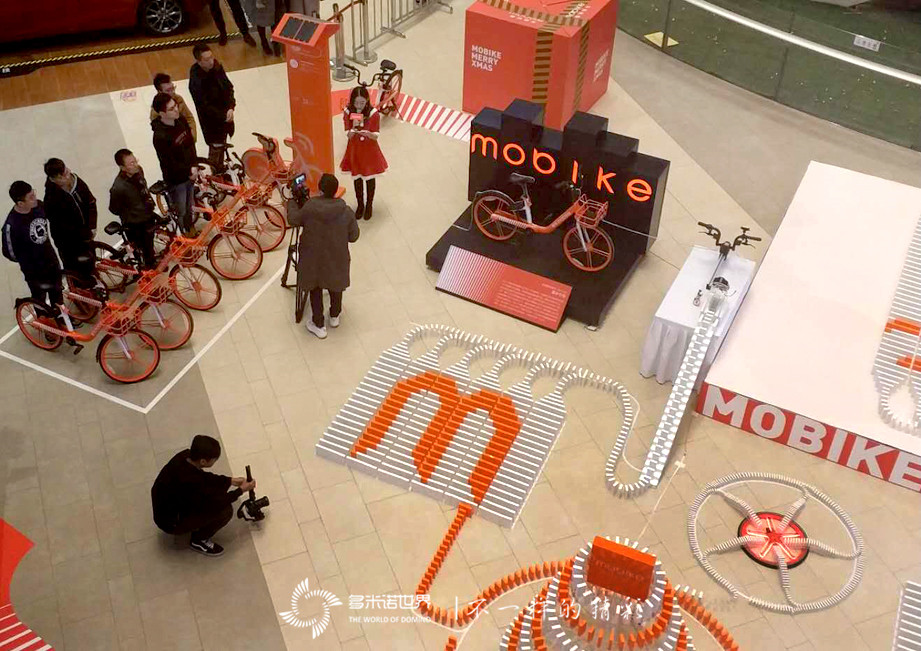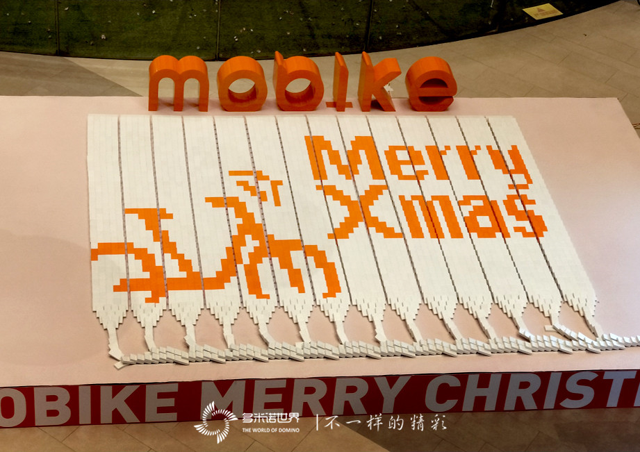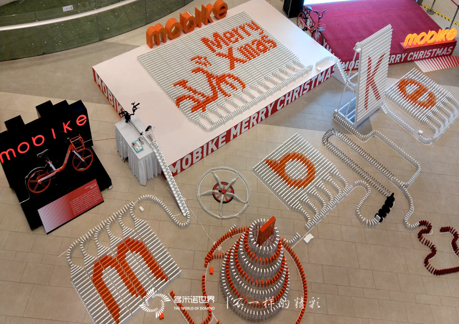 2017年12月17日,圣誕節(jié)即將來(lái)臨之際,摩拜在天津印象城舉行了“騎妙圣誕”主題活動(dòng),倡導(dǎo)低碳出行、文明用車(chē);由多米諾世界團(tuán)隊(duì)打造的多米諾視覺(jué)盛宴,閃亮活動(dòng)現(xiàn)場(chǎng)。
