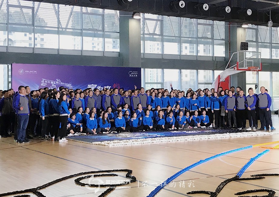 在骨牌碼放的過(guò)程中,大家也深深領(lǐng)悟到了多米諾骨牌運(yùn)動(dòng)精神的真諦??此撇豢赡芡瓿傻娜蝿?wù),在大家的共同努力下最終達(dá)成,盡管過(guò)程中也充滿著艱辛、緊張和驚心動(dòng)魄,不過(guò)這一切恰恰又是多米諾骨牌運(yùn)動(dòng)的最大魅力,經(jīng)歷了這一切,大家更加地期待著結(jié)果的呈現(xiàn)。當(dāng)表達(dá)精英使命感和愿景的”客為本“、”贏未來(lái)“文字圖畫(huà),承載著”光榮與夢(mèng)想“的火箭造型,代表著隊(duì)員風(fēng)采的旗幟,別克LOGO,以及本次活動(dòng)的主題畫(huà)面依次完美呈現(xiàn)的時(shí)候,現(xiàn)場(chǎng)的歡呼聲代表了所有隊(duì)員的心情,愉悅的心跟隨著骨牌一起律動(dòng)。