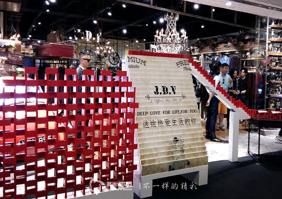 J.D.V三里屯店盛大啟幕。“多米諾世界”團(tuán)隊(duì)助陣,演繹酷炫時(shí)尚多米諾啟動(dòng)儀式,亞洲街舞王子黃景行與眾嘉賓共注香檳啟動(dòng)首枚骨牌,慶祝三里屯店開業(yè)。