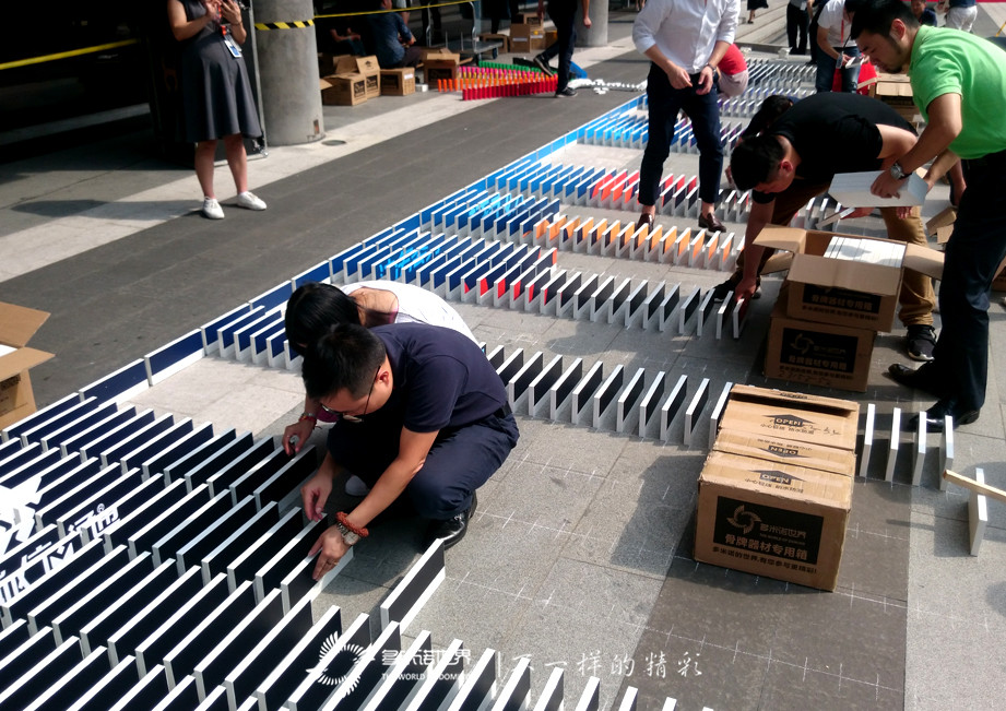 雖然誠信通的伙伴們都是第一次參與多米諾活動,但大家都積極、努力地完成著分配給自己的骨牌碼放任務(wù),不畏戶外天氣的炎熱、秋風(fēng)的干擾,經(jīng)受住了意外倒帶來的失敗考驗,經(jīng)千辛歷萬難,最終在9月21日將一場精彩的多米諾慶典完美的呈現(xiàn)在大家面前,終獲萬千矚目!