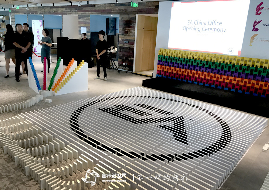 2017年10月26日, EA中國辦公室揭牌儀式在上海成功舉行,多米諾世界團(tuán)隊設(shè)計實施的多米諾啟動儀式成為儀式亮點(diǎn)。