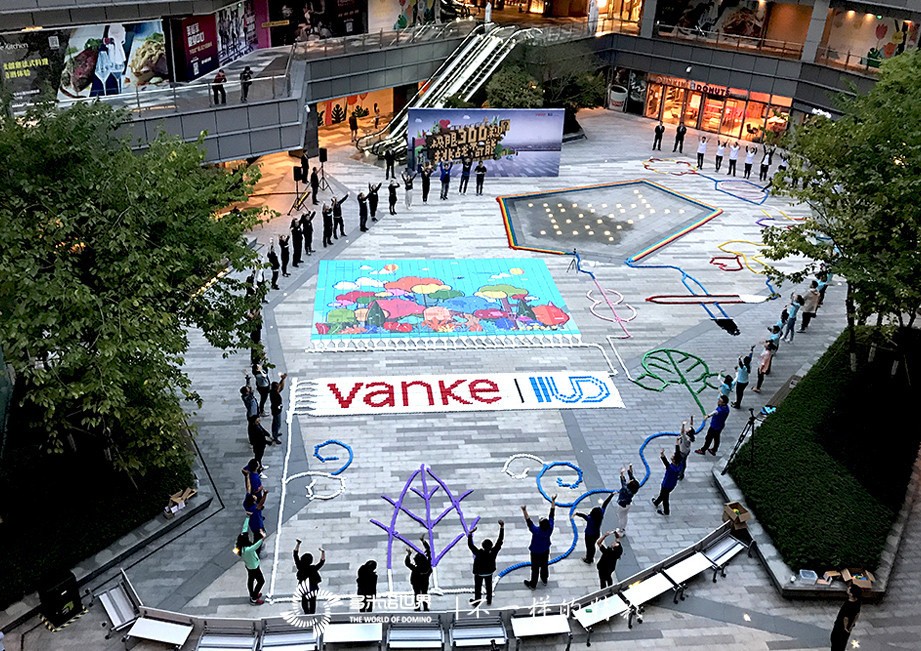 團(tuán)隊(duì)大挑戰(zhàn)和創(chuàng)意大挑戰(zhàn)是壓軸項(xiàng)目,所有隊(duì)員要共同碼放完成一幅多米諾畫卷。畫卷中有熱帶雨林圖案,有萬科產(chǎn)城LOGO畫面,還有各隊(duì)的創(chuàng)意設(shè)計(jì);大家既要嚴(yán)格按照技術(shù)要求碼放骨牌,又要發(fā)揮想象、進(jìn)行創(chuàng)意設(shè)計(jì),還要與秋風(fēng)戰(zhàn)斗到底。過程中,骨牌不敵秋風(fēng),一片片被吹倒;隊(duì)員不懼秋風(fēng),一次次從頭再來;最終隊(duì)員們戰(zhàn)勝了秋風(fēng),完成了所有骨牌碼放。