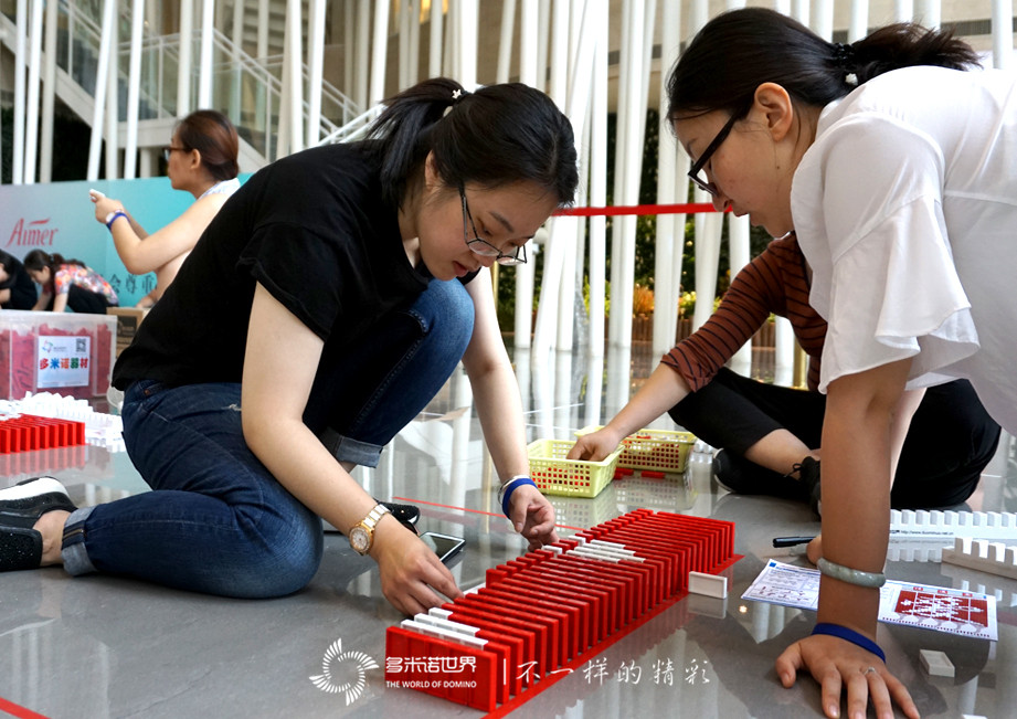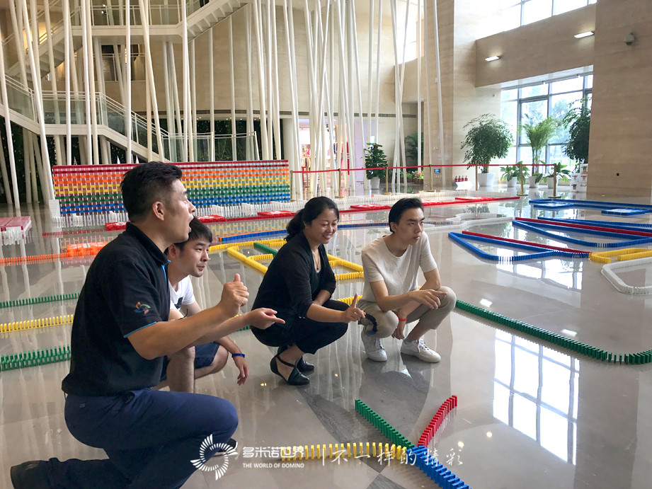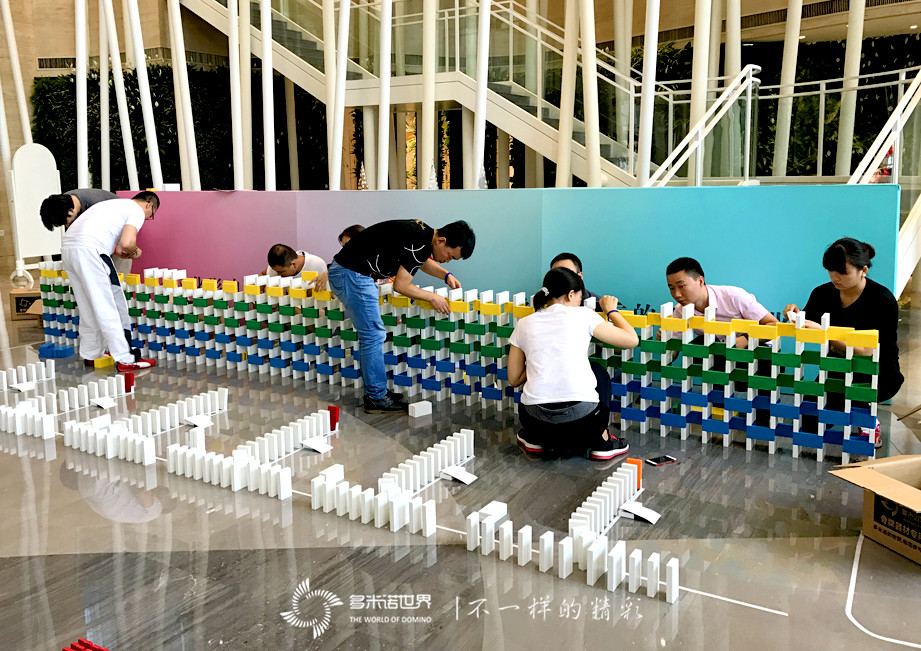 大家多數(shù)是第一次參加多米諾活動,但大家在認(rèn)真聽完多米諾世界王磊的培訓(xùn)講解后,都躍躍欲試、志氣高昂,在競技大挑戰(zhàn)的游戲熱身環(huán)節(jié),現(xiàn)場就高潮迭起。進(jìn)入骨牌創(chuàng)意碼放環(huán)節(jié)后,大家隨即沉下心來,用細(xì)心、耐心、用心碼放每一枚骨牌,雖然有失誤、意外發(fā)生,但大家卻沒有一絲懈怠與灰心,在規(guī)定時間內(nèi)完成了所有碼放任務(wù),并將所有多米諾畫面串連到一起。