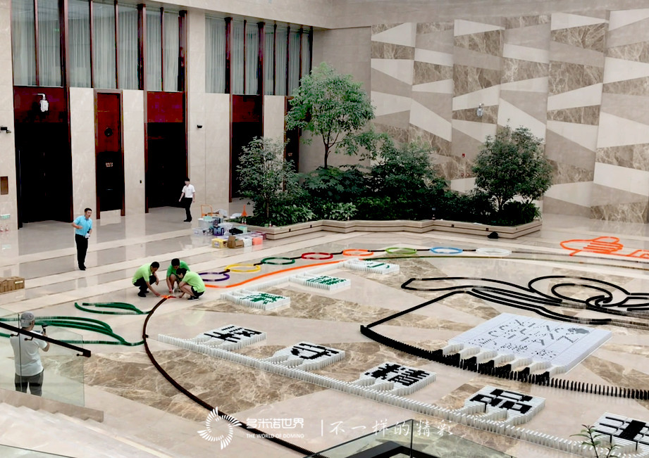 活動(dòng)現(xiàn)場(chǎng),認(rèn)真聆聽(tīng)了多米諾團(tuán)隊(duì)老師的技術(shù)培訓(xùn)的隊(duì)員們,在各自的任務(wù)區(qū)域進(jìn)行細(xì)致的骨牌碼放。身著不同顏色服裝的隊(duì)員,在活動(dòng)現(xiàn)場(chǎng)就像流動(dòng)的彩虹一樣移動(dòng)穿梭,很快,一幅幅骨牌圖案便豎立在場(chǎng)地中。