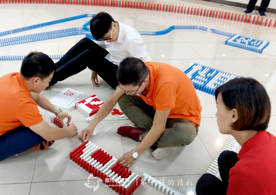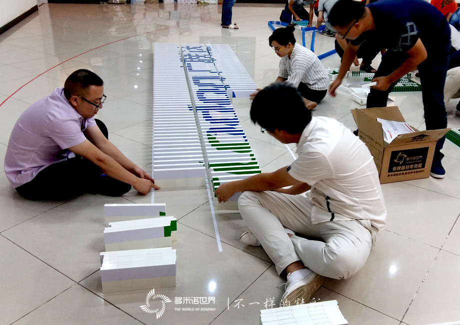 雖然學(xué)員們在過程中努力按照多米諾專業(yè)老師的要求,完成每一個(gè)環(huán)節(jié),但還是不免出現(xiàn)失誤,而當(dāng)所有骨牌即將碼放完成,最后收尾環(huán)節(jié)時(shí),又有畫面意外倒地,令原本馬上就要品嘗到成功喜悅的學(xué)員們一下子又緊張起來,但大家并沒有氣餒,而是再一次“從頭再來”,學(xué)員們合作配合,最終一幅完整的多米諾作品展現(xiàn)在大家面前。