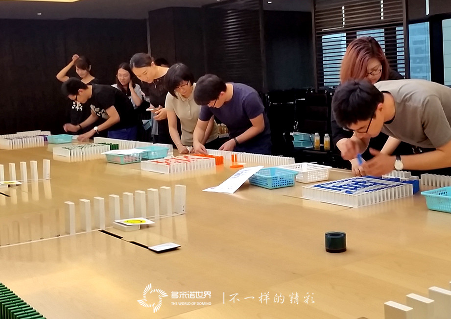 雖然短短一個(gè)多小時(shí)的活動(dòng),內(nèi)容卻很豐富,從熟悉多米諾骨牌的碼放技巧,到分工協(xié)作完成畫面的碼放,小機(jī)關(guān)的制作,大家盡情投入,齊心協(xié)力完成作品,過程中留下無數(shù)歡樂和喜悅。當(dāng)音樂多米諾機(jī)關(guān)啟動(dòng)第一枚骨牌,一幅幅畫面完美呈現(xiàn),歡呼雀躍充滿了場地,留下美好的合影,記錄難忘瞬間。 大家紛紛覺得意猶未盡,期待下次多米諾再相聚!