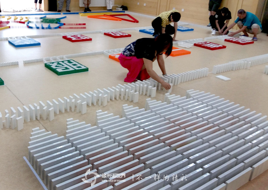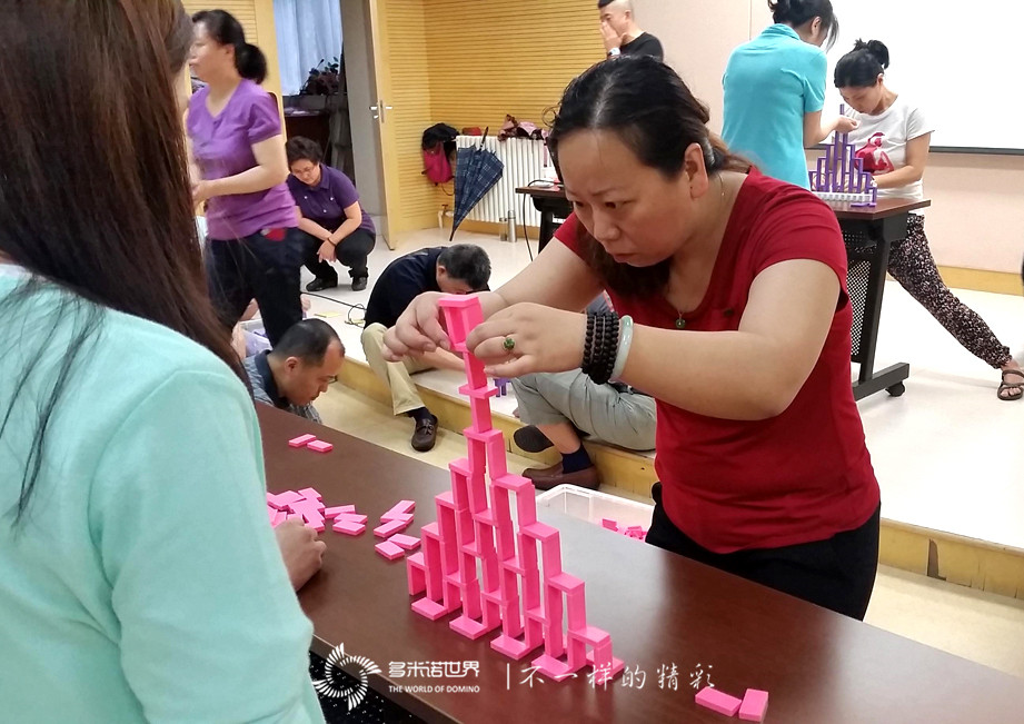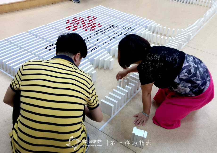 為了讓大家更快的進(jìn)入角色,多米諾世界團(tuán)隊(duì)的王磊老師介紹完多米諾運(yùn)動(dòng)后,特別設(shè)置了一個(gè)多米諾游戲挑戰(zhàn)賽。三個(gè)精巧、有趣的多米諾游戲,激起了大家的興趣,令所有隊(duì)員很快便沉浸在多米諾的世界中。在一枚枚骨牌的堆砌過程中,一張張專注的臉龐,失敗時(shí)的沮喪目光,成功時(shí)的神采飛揚(yáng),仿佛回到了難忘的童年時(shí)光。