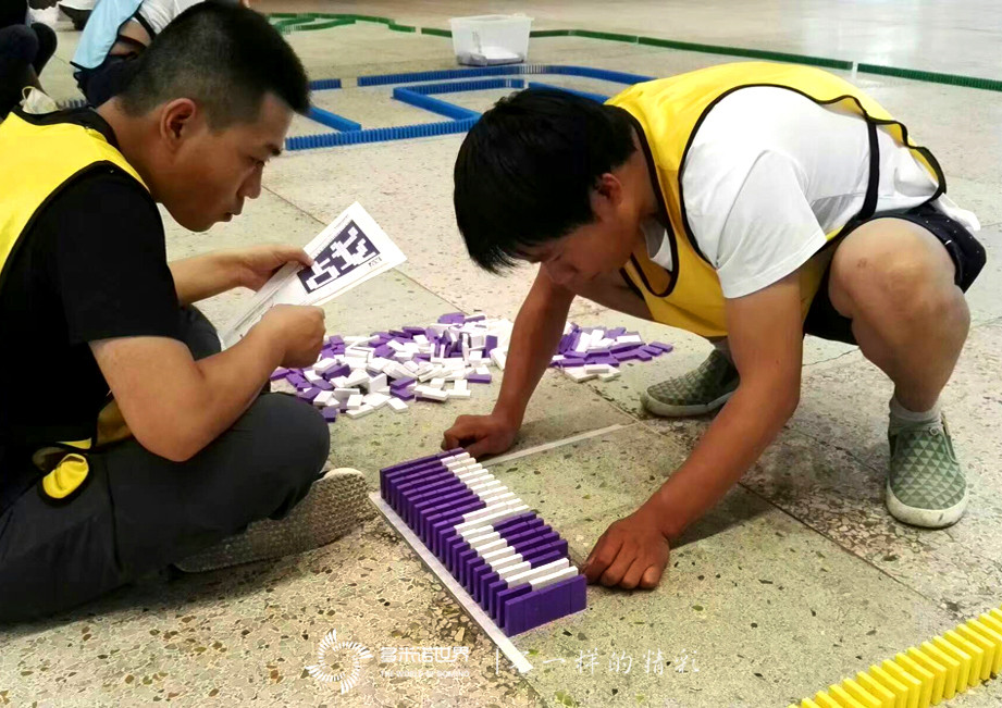 不同的隊名、隊標、團隊造型,彰顯了每支隊伍獨特的個性與風采;所有學員共同完成的團隊任務(wù),傾注了所有人的汗水與努力;創(chuàng)意設(shè)計任務(wù),通過不同的圖案設(shè)計,不同的碼放方法,高低錯落的骨牌陣列,展現(xiàn)每支隊伍的多米諾創(chuàng)想,學員們的想象力與創(chuàng)意力。過程中骨牌的意外倒塌,困難與挫折,錘煉著學員們的堅韌,也令大家團結(jié)的更加緊密,令團隊更加堅不可摧,讓所有人更加珍惜最終成功的來之不易,為自己驕傲,為團隊驕傲。