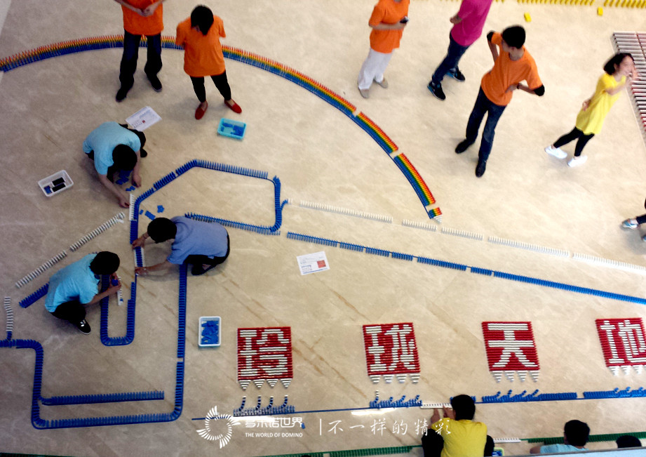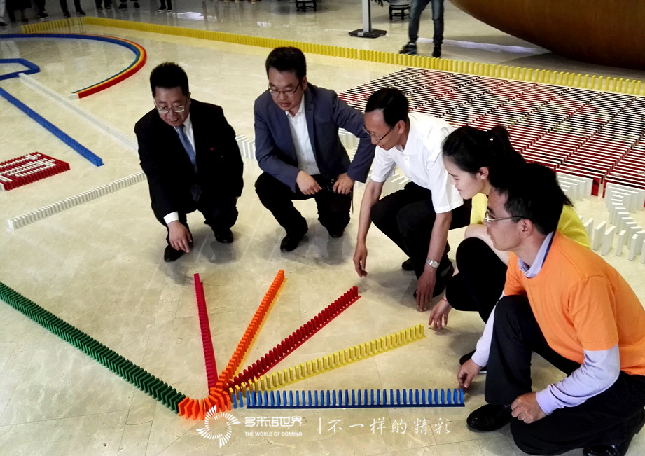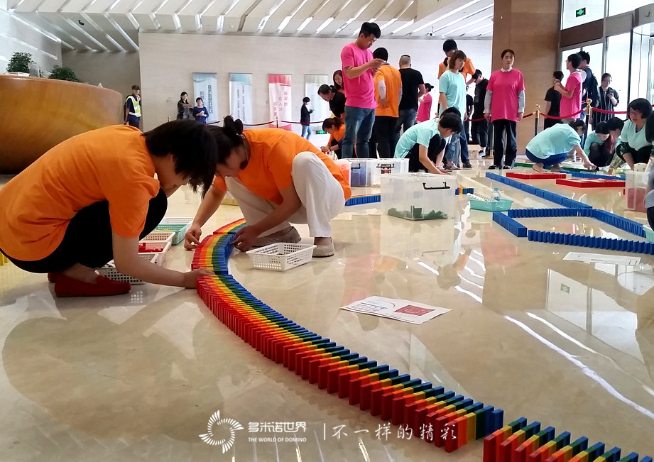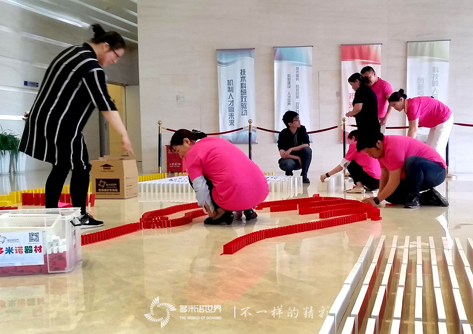 來自兩個(gè)機(jī)構(gòu)的45名青年員工,組成了4支隊(duì)伍,經(jīng)過王磊老師的專業(yè)培訓(xùn),有序進(jìn)入場地,在多米諾世界教練團(tuán)隊(duì)的指導(dǎo)下,共同完成骨牌碼放任務(wù)。