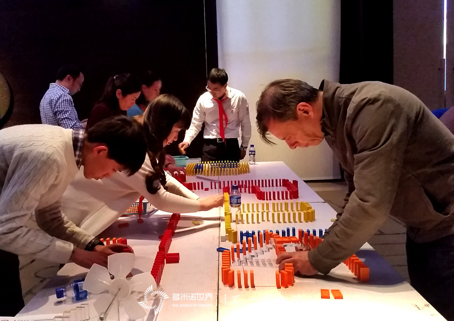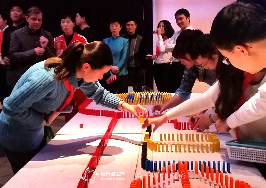 2016年元月22日,多米諾世界團隊受邀,為世界五百強之一的瑞士再保險公司舉辦了一場豐富有趣的多米諾團隊創(chuàng)意大挑戰(zhàn)活動。與以往的團隊多米諾活動有所不同,本次挑戰(zhàn)活動精心設置了豐富有趣的多米諾機關裝置,參與挑戰(zhàn)的隊員們需要在規(guī)定的時間內(nèi)完成創(chuàng)意挑戰(zhàn)和多米諾機關裝置的設計,并且需要將創(chuàng)意的畫面與機關裝置進行有效地組合,達到一觸即發(fā)的效果。