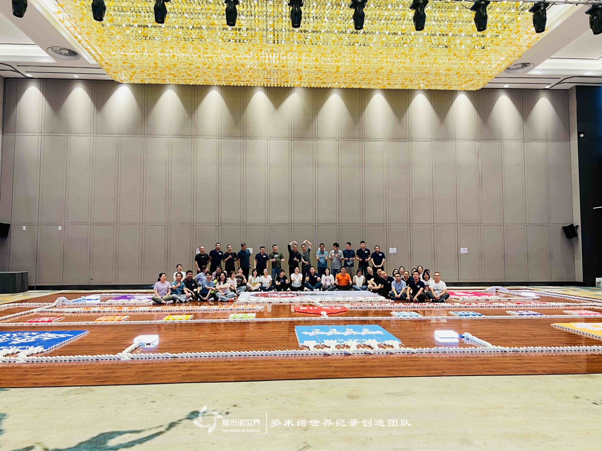 經(jīng)過多米諾世界老師的技術(shù)分享后,伙伴們迅速投入到了搭建過程中。參與活動(dòng)的伙伴們分成了五個(gè)小組,每個(gè)小組負(fù)責(zé)設(shè)計(jì)和搭建一組團(tuán)隊(duì)文化核心詞。經(jīng)過團(tuán)隊(duì)的不懈努力和協(xié)作,成功地完成了整個(gè)多米諾作品的搭建。骨牌隨著一個(gè)小小的觸發(fā),迅速傳遞,依次呈現(xiàn)每一幅多米諾畫面,并點(diǎn)亮隊(duì)員共同創(chuàng)作的企業(yè)文化燈牌裝置,將企業(yè)文化生動(dòng)地詮釋出來。