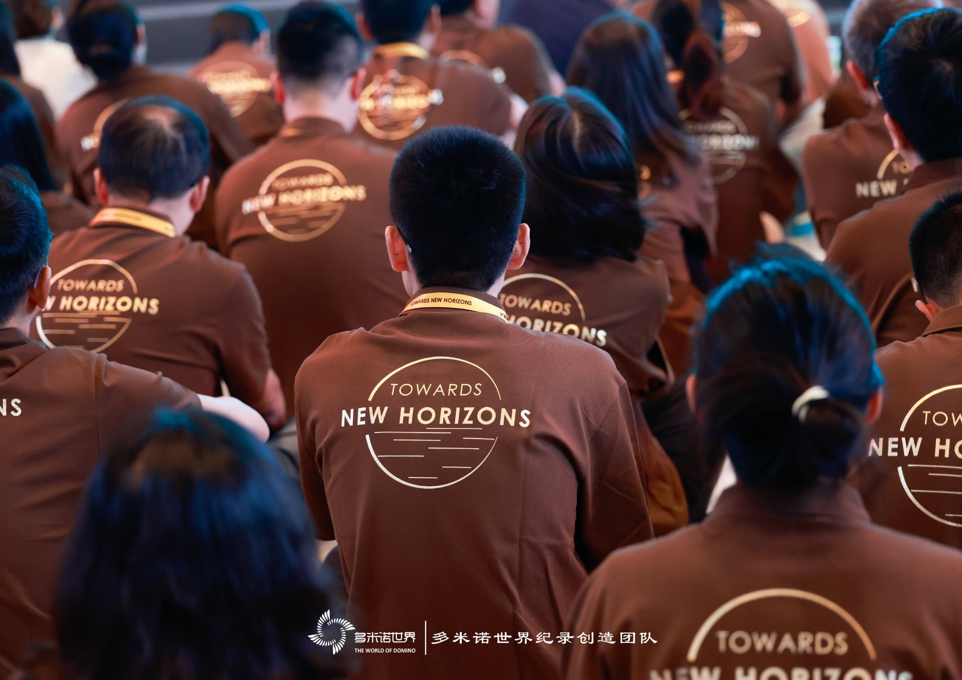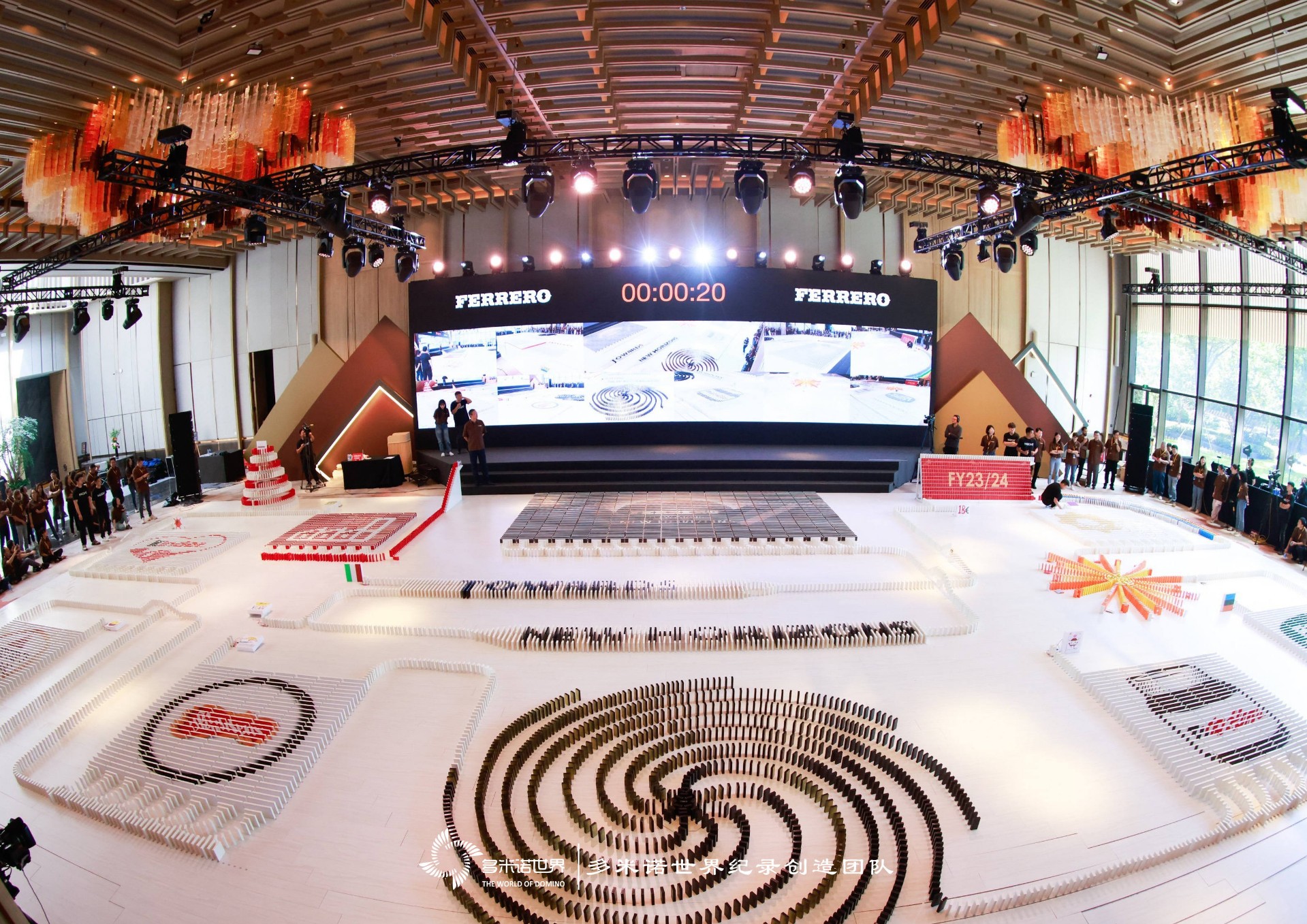 彩色的多米諾骨牌排列形成各種圖案和形狀,經過兩個小時的努力,一幅巨大多米諾作品完成。在全場共同倒計時聲中,嘉賓觸發(fā)一枚費列羅巧克力,隨之聯動骨牌順利行進,骨牌呈現出的畫面變得栩栩如生,產品的輪廓和細節(jié)躍然于眼前。隨著骨牌畫面的依次呈現,為伙伴們帶來了無盡的驚喜和愉悅,這些大家親身體驗,共同努力創(chuàng)造出來的成果,看起來尤為親切,在收獲成功喜悅的同時,在共創(chuàng)過程中更拉近了伙伴間的距離。