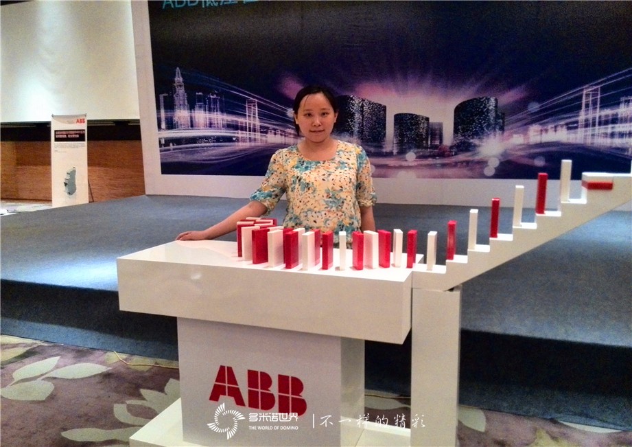 會議中特別邀請“多米諾世界”專業(yè)團隊為會議設計多米諾骨牌啟動形式,推出2014年的新產品形象,用多米諾這項專注細節(jié)的形式來推出新品,恰恰寓意ABB百年品質,源于細節(jié)的理念,為大家?guī)戆踩咝У漠a品。 在全場共同倒計時聲中,來自ABB產品事業(yè)部的負責人為新品啟動第一枚骨牌,紅白雙色骨牌共同沿著整齊的軌道行進,一氣呵成地成功將新品展現(xiàn)在大家面前,現(xiàn)場掌聲歡呼,大家共同期待美好的未來像多米諾骨牌一樣順暢。