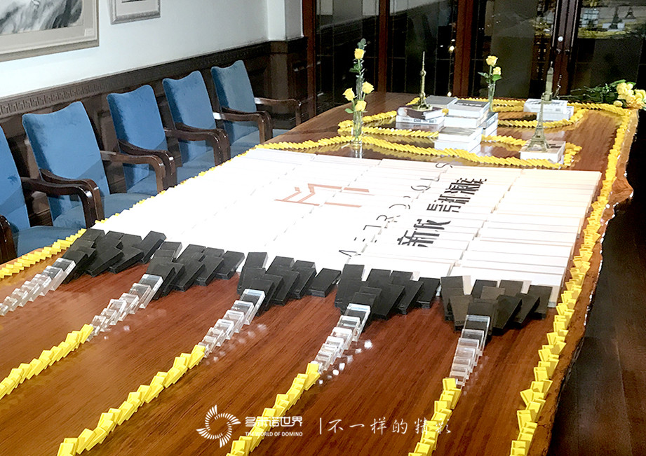2019年6月11日晚,“新城 璟郡瀾庭”多米諾啟動(dòng)儀式在上海舉行。多米諾世界團(tuán)隊(duì)因地制宜,設(shè)計(jì)了別致的桌上多米諾啟動(dòng)儀式,多米諾骨牌圍繞花朵、書(shū)籍、建筑模型,將主畫(huà)面包圍其中。倒計(jì)時(shí)聲中,骨牌啟動(dòng),圍繞主題畫(huà)面四周蜿蜒前行,伴隨著現(xiàn)場(chǎng)的驚呼聲,“新城 璟郡瀾庭”主畫(huà)面成功呈現(xiàn)。