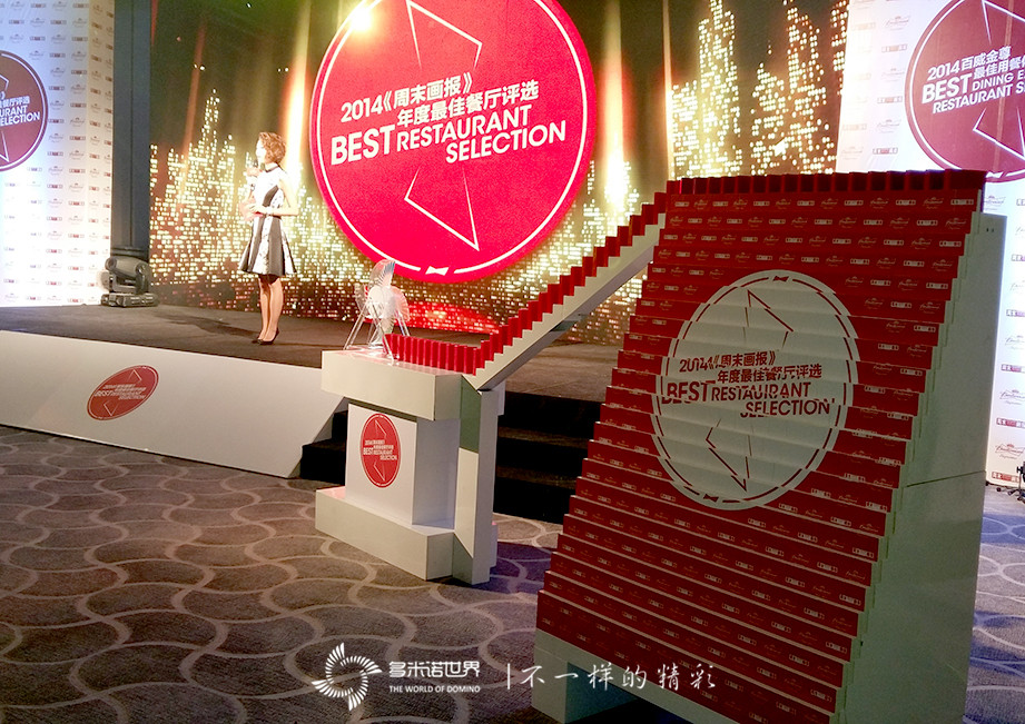 2015年02月05日下午,由現(xiàn)代傳播集團攜旗下《周末畫報》 “2014年度最佳餐廳評選”在北京新世界酒店隆重舉行,多米諾世界為活動設(shè)計實施了精彩的多米諾啟動儀式,北京眾多知名餐廳的掌門人與美食家齊聚一堂,共同見證了年度最佳餐廳的誕生。